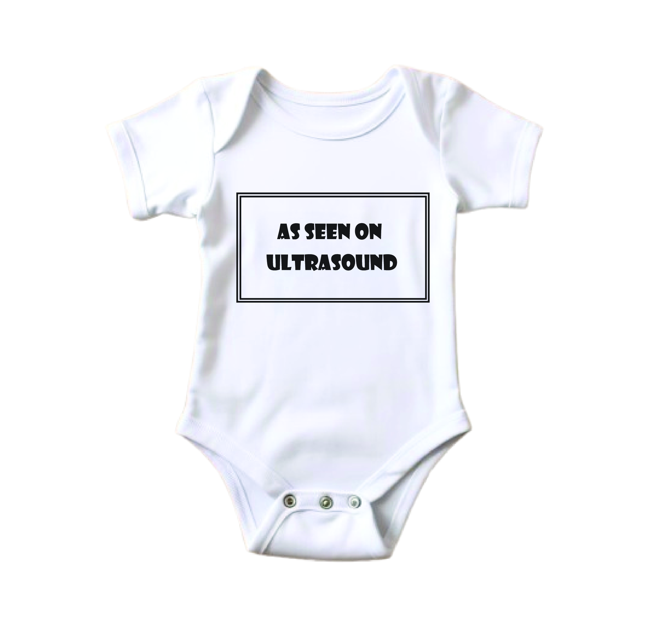 As seen on ultrasound baby grow. 100% Cotton material with vinyl design.